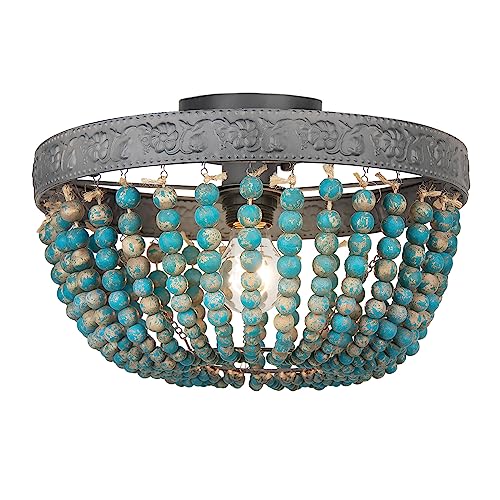 Schindora Bambu Taklampa, Mini Size Boho Semi Flush Mount Taklampa, Handgjord Rotting Trä Lampskärm, Bondgård ljusarmaturer för sovrum barnkammare Hall Korridor Passway