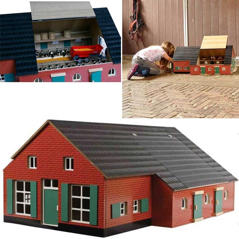 Bondgård och lantgård i trä för bondgårdsdjur leksak Kids Globe 1:32
