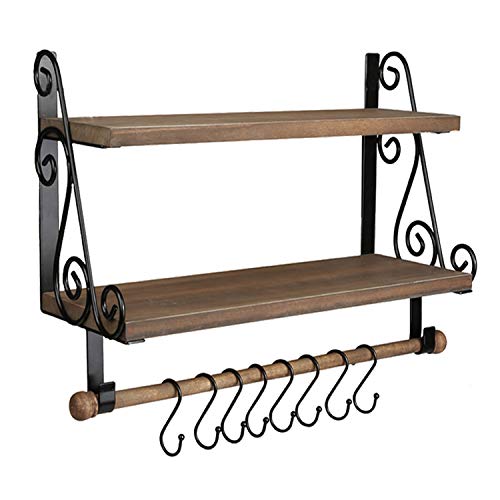 Halcent flytande hyllor väggmonterade förvaringshyllor, 2-nivåer rustik bondgård trä vägghylla kök kryddhylla badrumshylla med handduksstång och 8 krokar