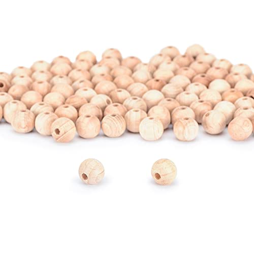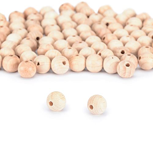 Vaessen Creative 11006-002 obehandlade träpärlor, ø 10 mm, 100 stycken, runda pärlor för pyssel av gör-det-själv handgjorda dekorationer, smycken, hantverk, trä, del