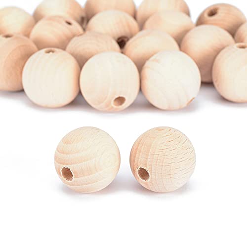 Vaessen Creative obehandlade träpärlor, ø 30 mm, 20 stycken, runda pärlor för pyssel av gör-det-själv handgjorda dekorationer, smycken, hantverk, trä
