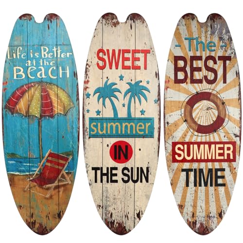 Warmhm 3 st surfbräda träskylt surfbräda trä Bin surfing mini surfbräda dekorationer för surffester träsurfbräda liten strandskylt trä sommar hänge strandsemester