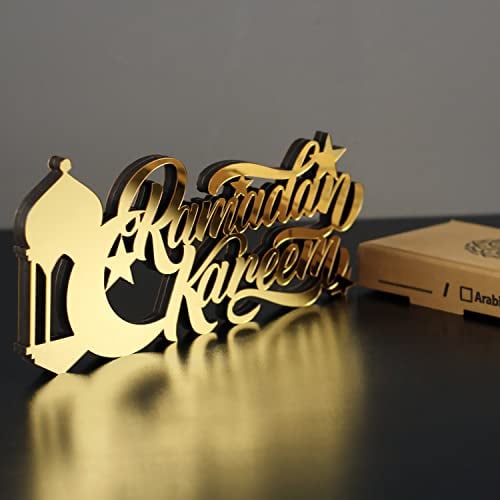 IWA CONCEPT Islamiska bordsdekorationer i trä, Ramadan Kareem- och Eid Mubarak-dekorationer, islamiska och muslimska gåvor, Ramadan Eid-dekoration (Ramadan Kareem-1, guld)