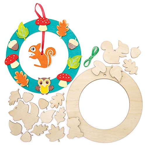 Baker Ross FE687 Skogsdjur trä krans kit – paket med 2, kransring för att dekorera och visa, trähantverk för barn, gör dina egna dekorationer