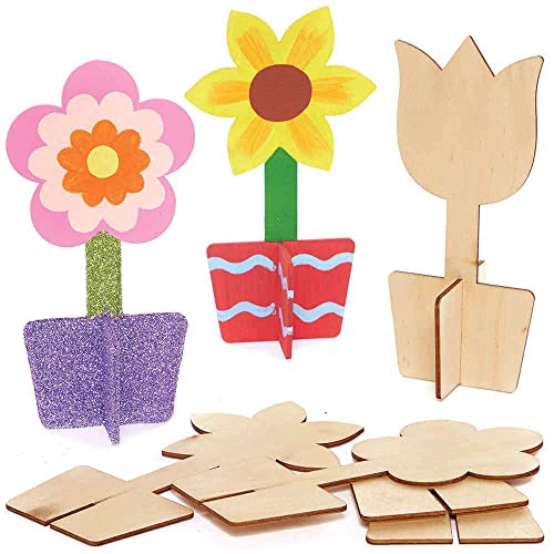Baker Ross FC727 Blomma 3D Trä Stå upp Dekorationer 6-Bit Packa för Ungar