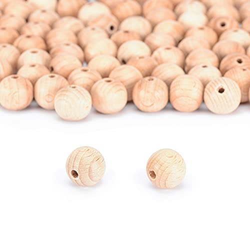 Vaessen Creative 11006-003 obehandlade träpärlor, ø 12 mm, 100 stycken, runda pärlor för pyssel av gör-det-själv handgjorda dekorationer, smycken, hantverk, trä, del