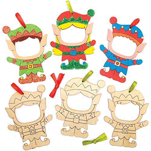 Baker Ross AX399 Julselfen fotoram, dekorationer av trä, pysselset för barn – 10 stycken, festliga kreativa set och pysseltillbehör för pyssel och dekoration vid jultiden
