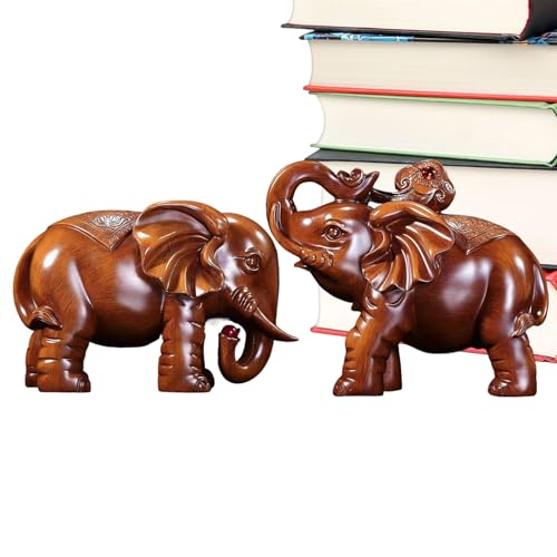 Trä elefant, trä elefantskulptur | Hand snidad trä elefantstaty - Handgjord hem accentdekor för skrivbordsskrivbordshylla bokhylla sovrum vardagsrum