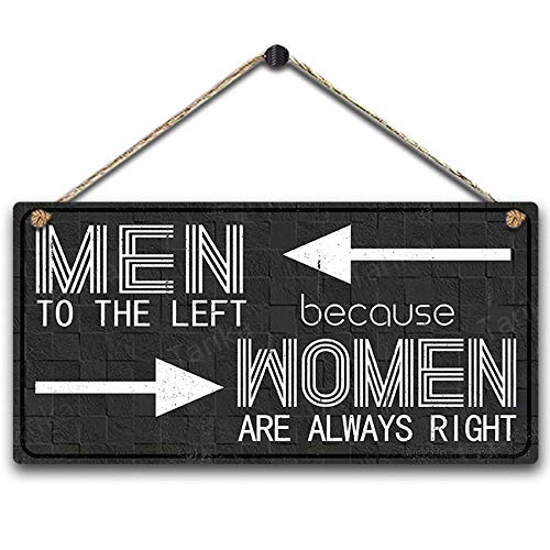 'Men To The Left Because Women Are Always right dekorationsmålning hängande skylt 13 x 25 cm för hem kök badrum gård trädgård garage trä väggdekor