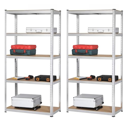 MBI - vill göra - metall garage hylla - 180x90x40 Cm - hylla 5 hyllor för garage järnprofil robust och hållbar hylla trä metall hylla garage (2, Galvaniserad)