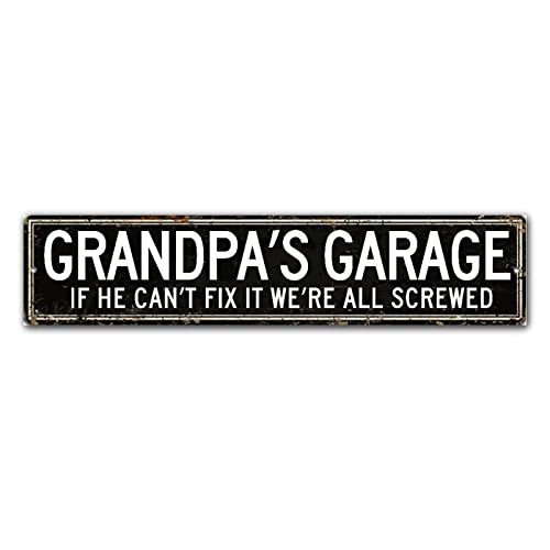 Träskylt Grandpa's Garage If He Can't Fix It We're All Screed Rustik Trä Väggkonst Skyltar Roliga Garageskyltar Trä Köksdekor Skylt Hem Väggdekor Personlig Träskylt 15 x 61 cm