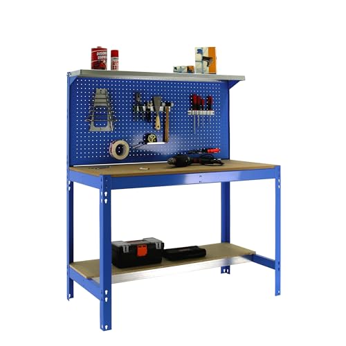 Simon Rack Arbetsbänk med perforerad panel, 400 kg Lastkapacitet, 1445x910x610 mm, DIY Arbetsbord Garage, Blå/Trä – BT3