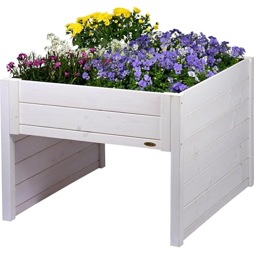 dobar® Stor robotgräsklippare garage av trä med planteringslåda inkl. folie – gräsklippare garage – 79 x 73 x 56 cm – vit
