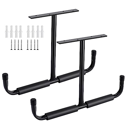 Sinoer Garage förvaringskrokar hylla tak, väggmonterade krokar, slitstark verktygshängare för stege, slangrör, trä, verktyg och andra skrymmande föremål (2-pack, svart)