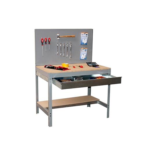 Simon Rack Arbetsbänk med låda och perforerad panel, 400 kg Lastkapacitet, 1445x910x610 mm, DIY Arbetsbord Garage, Galvaniserad/Trä – BT3