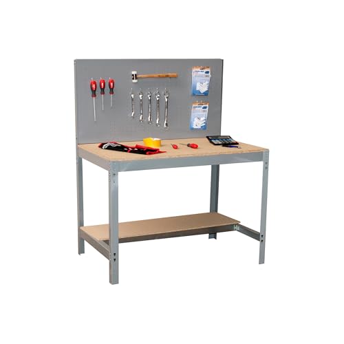 Simon Rack Arbetsbänk med perforerad panel, 400 kg Lastkapacitet, 1445x910x610 mm, DIY Arbetsbord Garage, Galvaniserad/Trä – BT3