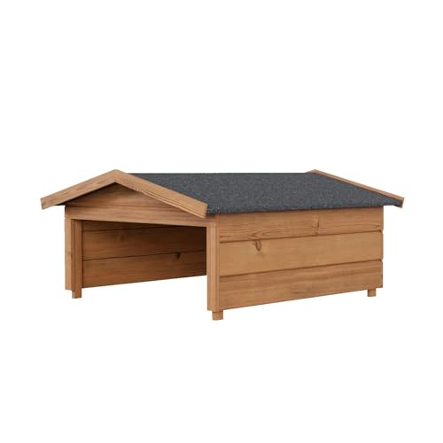 Relaxdays Robotgräsklippare garage, trä, H x B x D: 52,5 x 79 x 74 cm, sadeltak, gräsklippare hus, robotgarage, brun/svart