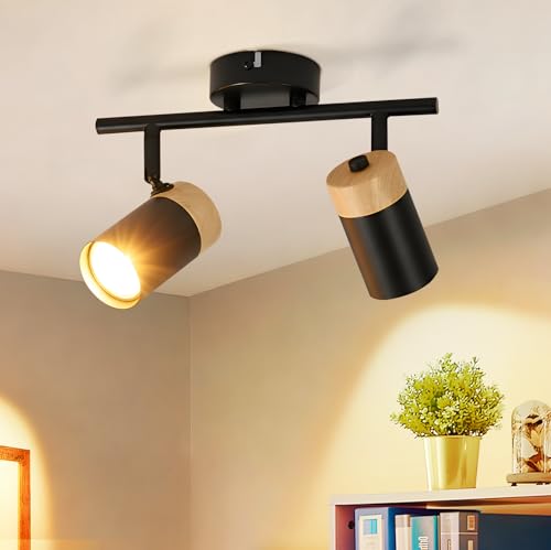 Glitzerlife Takspot Trä Taklampa 2 Ljuskällor - Takspotlights Svart GU10 LED Svängbar 330° Spotlight för Hall Garage Vardagsrum Sovrum Köks Utan Ljuskälla