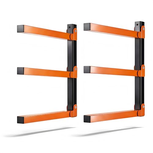 HSJKWPT 2 stycken metallhyllor i trä, kraghylla väggmontering och träförvaring 3-nivåer, rymmer upp till 360 pund, för inomhus- och utomhusbruk förvaringslösning för garage, källare och skafferi