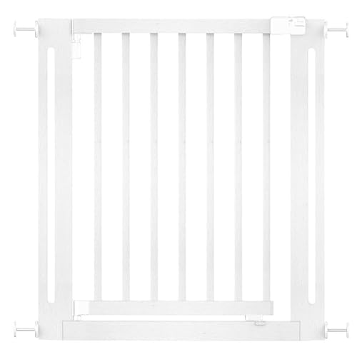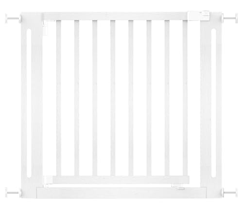 Safetots elegant grind i trä, vit, 79 cm – 87 cm, tryckpassad säkerhetsgrind, 57 cm extra bred dörröppning, en del extra bred port för trappor, hallar och dörrar, snygg design enkel installation