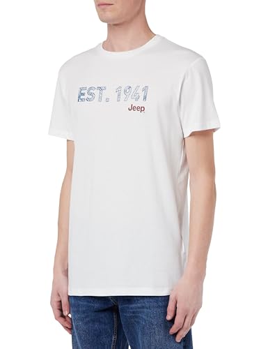 JEEP O102908-W000 J T-Shirt Herr EST.1941 Stort Tryck Ringar Trä J23W Herr White M, Vit, M