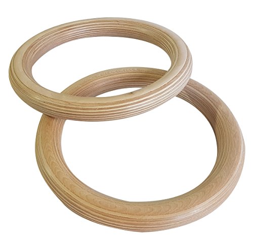 h2i Gymnastikringar för barn, repringar av trä, inklusive karbinhake för upphängning (ringar)