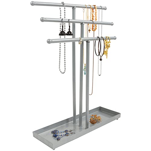 Belle Vous Silver Metall 3 Lagers Smyckesuppvisningsställ & Förvaringsbas Brickhållare – Trä Bordsdekoration Hängande Organisatör – Hängare för Halsband, Armband, Ringar, Klockor & Örhängen