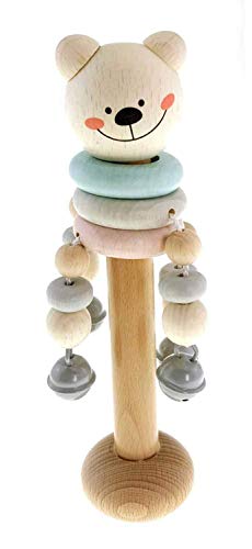 Hess Holzleksak 14669 – klämma av trä med klockor, pärlor och ringar, naturserie björn, handgjord, för greppupplevelser och glad skallra