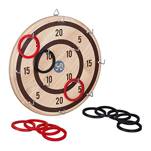 Relaxdays Ringkastspel, trä, väggkastspel för barn och vuxna, kasta ringar, inomhus och utomhus, Ø 29,5 cm, natur