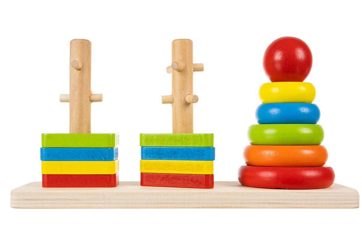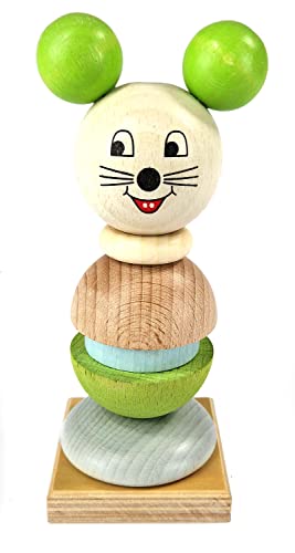 Hess Holzspielzeug 14979-stapelsats i trä, mus, handgjord, för barn från 3 år, torn med ringar och kulhuvud, 14979