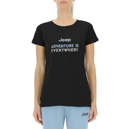 JEEP O102925-B000 J T-shirt för kvinnor Äventyr är överallt skriva ut stora ringar trä J23W dam svart M, Svart, M