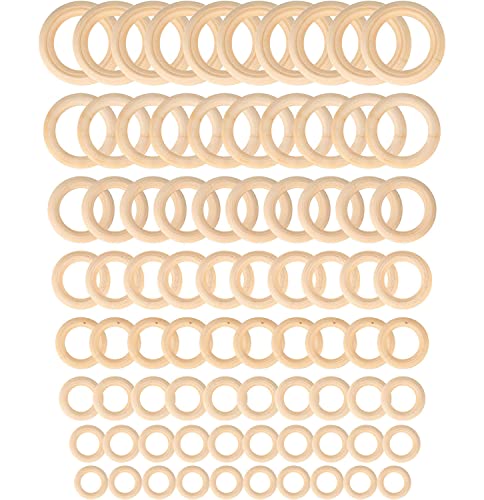 80 st träringar, naturliga trähoops, släta, obehandlade trä-makrame-ringar, träringar för hantverk smyckestillverkning, hantverk, hängsmycken, DIY-förbindelser (2/2,5/3/3,5/4/4,5/5/5,5 cm)
