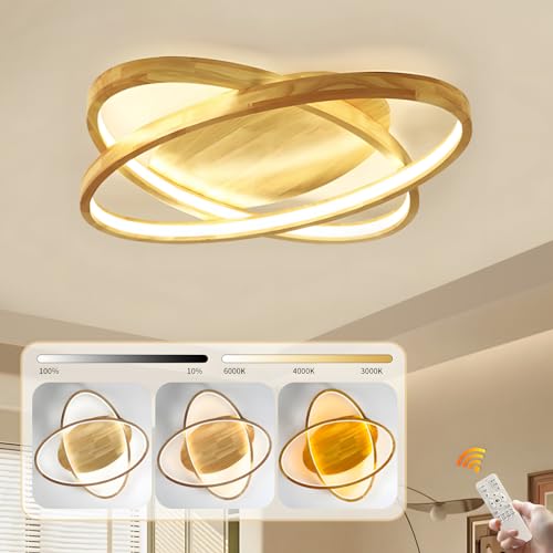 YYUTLUO LED Taklampa, Taklampa I Trä, 2 Ringar Runda Ø52cm / 50W, Dimbar Med Fjärrkontroll, Modern Dekorativ Vardagsrumslampa, Sovrums Tunn Oval Lampa, Takljus I Akrylträ