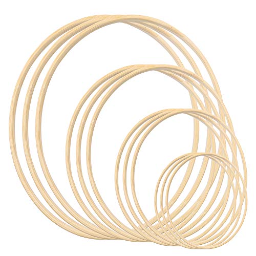Gukasxi 12-pack 4 storlekar (15 cm/20 cm/25 cm/30 cm) kransringar trä bambu blommigt ringset stora makramé hantverk ringar för gör-det-själv drömfångare, bröllopskransdekor och vägghängande hantverk