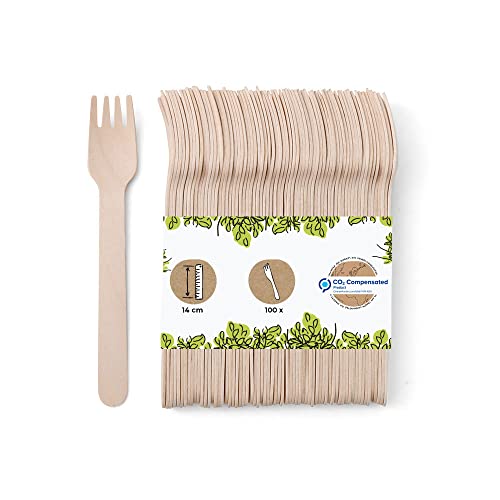 GREENBOX 100 kakgafflar trä I engångsbestick festbestick träbestick bestick engångsservis biologiskt nedbrytbar, komposterbar trägafflar I stabilt engångsbestick gafflar 14 cm