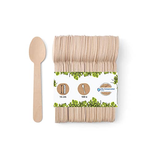 GREENBOX miljövänlig engångsslev trä I träbestick soppsked träsked engångsbestick I biologiskt nedbrytbara och komposterbara bestick I 100 x engångsskedar 14 cm