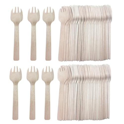 Engångsbestick, 200 stycken engångs kakgafflar, 10 cm engångsbestick, trägafflar, träbestick engångsbestick-100 % naturlig, miljövänlig, biologiskt nedbrytbar och komposterbar