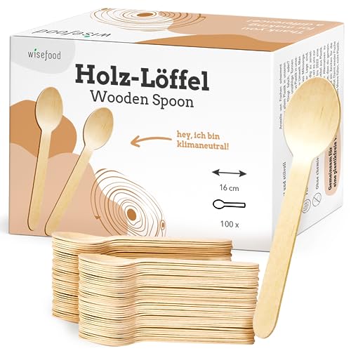 wisefood Engångssked av björkträ, engångs träsked 16 cm platt, biologiskt nedbrytbart engångsbestick, träbestick, engångssked, träsked (100 stycken)