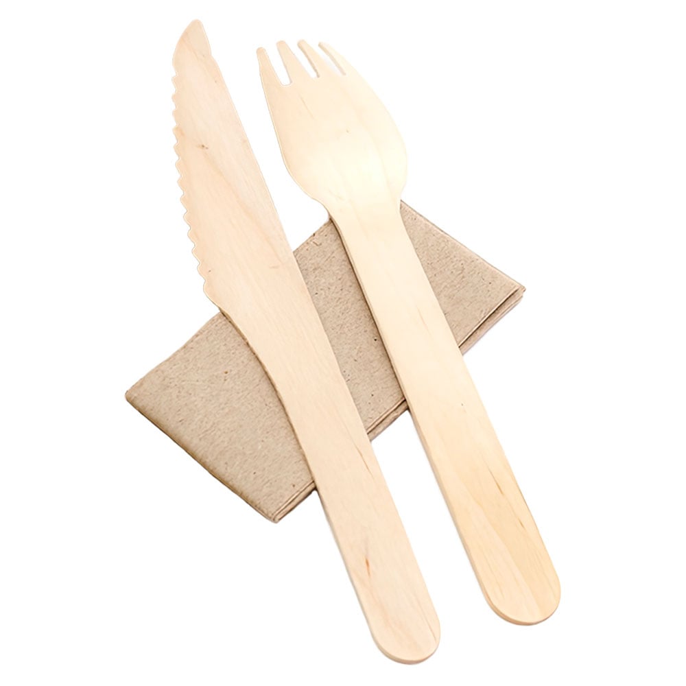 BIOZOYG Träbestick set, träkniv och trägaffel med servett 16 cm I biobelagd I bestick för snacks och fester I biologiskt nedbrytbara och plastfria I 250 stycken
