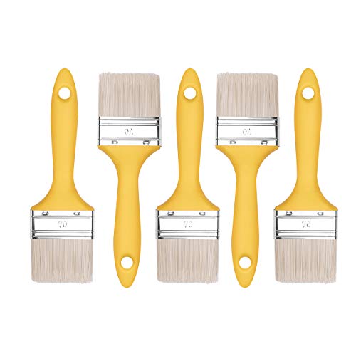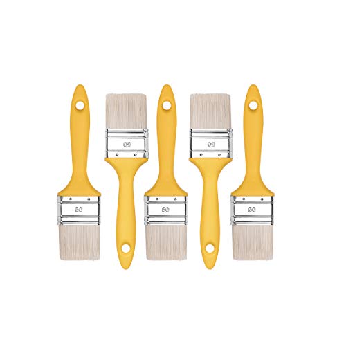 M7 5x Plattpensel-Set 50 mm, Serie 37, Syntetiska borst för träbets, Stålhylsa för metall, Universalkvast med plastgrepp