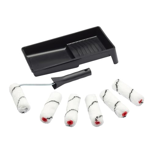 ProDec Advance 6 stycken 4-tums minifärgroller med medelhög lugg av mikrofiber, ram och bricka för en jämn målning med emulsionsfärger och träbets på innerväggar, tak och trä, 4"