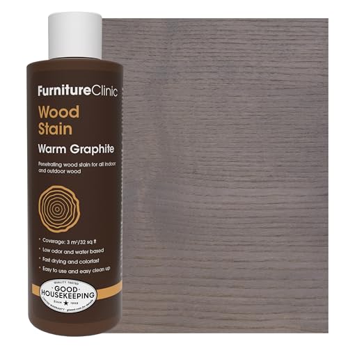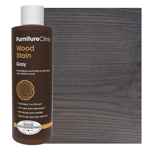 Furniture Clinic Träbets (grå) – snabbtorkande, mycket koncentrerad och lättapplicerad träbets för allt trä inomhus- och utomhus, vattenbaserad och giftfri, 250 ml