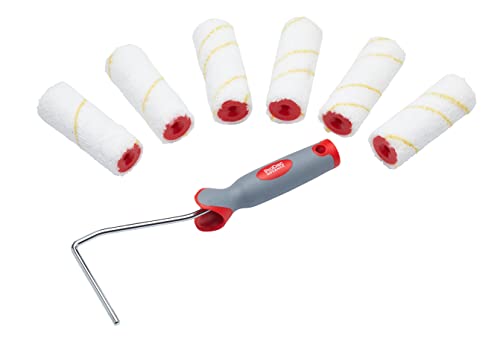 ProDec Advance 7 stycken 4 tums Jumbo korthårig mikrofiber minifärgroller och ram för en jämn finish med emulsion, glans, satin, lack, träbets på innerväggar, tak, trä, metall, 4"