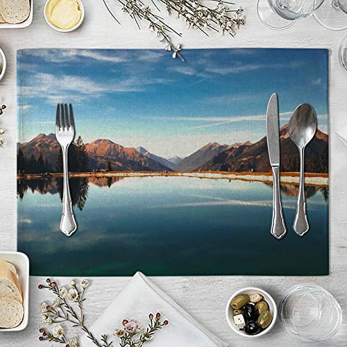 Beydodo Bordstabletter set om 4 bomull, bordstabletter tvättbara 42 x 32 naturlandskap motiv berg sjömönster bordstabletter för träbord glasbord