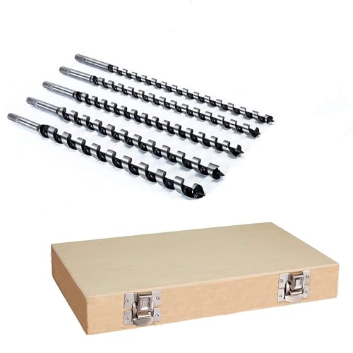 Träborrset lång ormborrsats 460 mm 5 delar i trälåda, träborr, spiralborr, borrsats Ø -12/14/16/18/20 mm