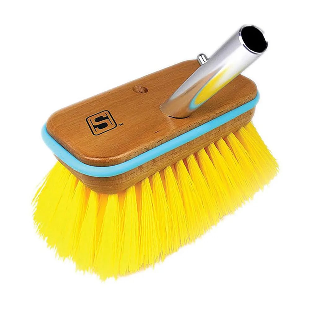 Novaliv Träborste med gängade borst och gängat handtag, fyra delar, golvskrubbborste, perfekt för rengöring av balkong, terrass, trädgård, inomhus och utomhus