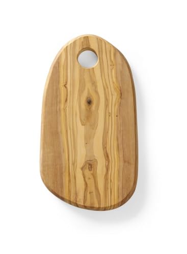 HENDI Serveringsbräda, av olivträ, skärbräda, träbräda, frukostbräda, steakbräda, köksbräda, tapasbräda, med hål, ca 250 x 165 x (H)18 mm