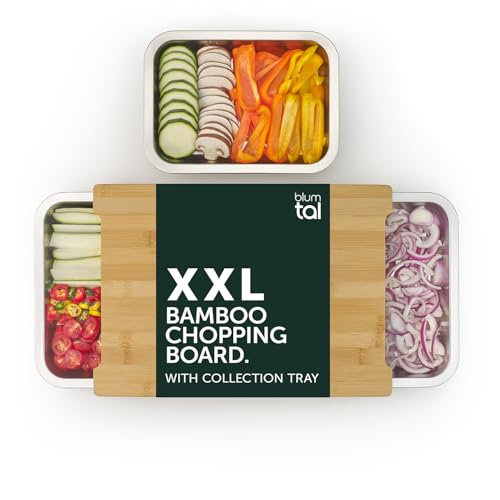 Blumtal skärbräda tillverkad av 100% bambu - 2cm tjock träbräda antibakteriell - massiv träskärbräda med saftspår - träskärbräda 45x30x2cm - alternativ till plastskärbräda