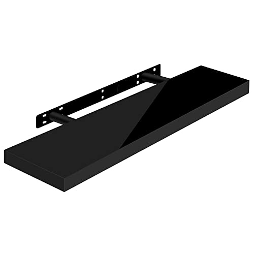 WOLTU Volato Vägghylla, svävande hylla, träbräda med högblank svart yta, CD-/DVD-hylla, bokhylla, 90 x 22,9 x 3,8 cm, RG9481sz