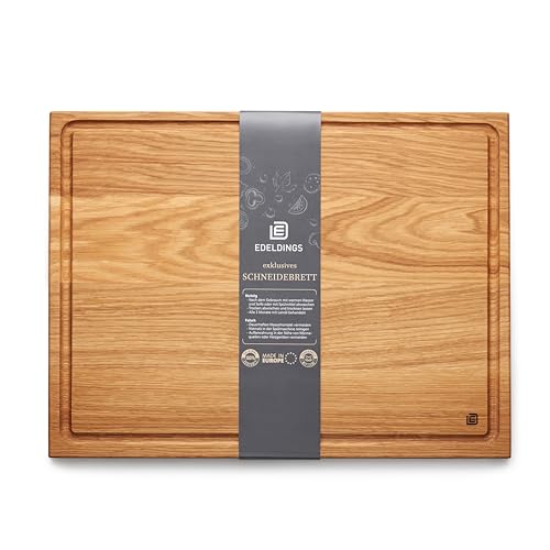 Edeldings XXL skärbräda i massivt trä av ek, med vätskespår | stor 40 х 30 cm | Antibakteriell köksbräda från Europa | serveringsbräda, träbräda av massivt trä